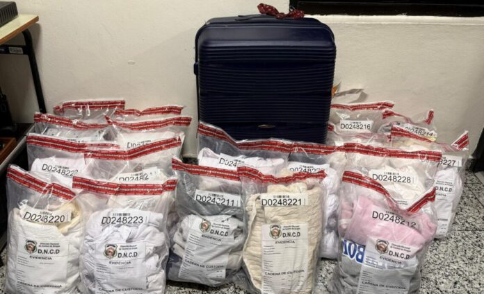 SANTO DOMINGO.-Una mujer dominico-italiana fue atrapada en el aeropuerto Internacional de Las Américas (AILA-JFPG) por agentes de la Dirección Nacional de Control de Drogas (DNCD) y miembros del Ministerio Público, cuando pretendía salir del país con una maleta llena de prendas de vestir, impregnadas con presunta cocaína.