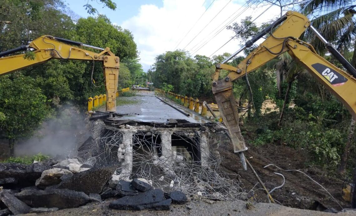 Inician demolición de puente sobre el río Camú tras colapso por lluvias en Puerto Plata