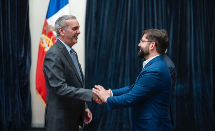 Santiago de Chile.- El presidente Luis Abinader presentó su saludo protocolar a su homólogo de Chile, Gabriel Boric, en el Palacio de La Moneda, la casa de gobierno chilena.