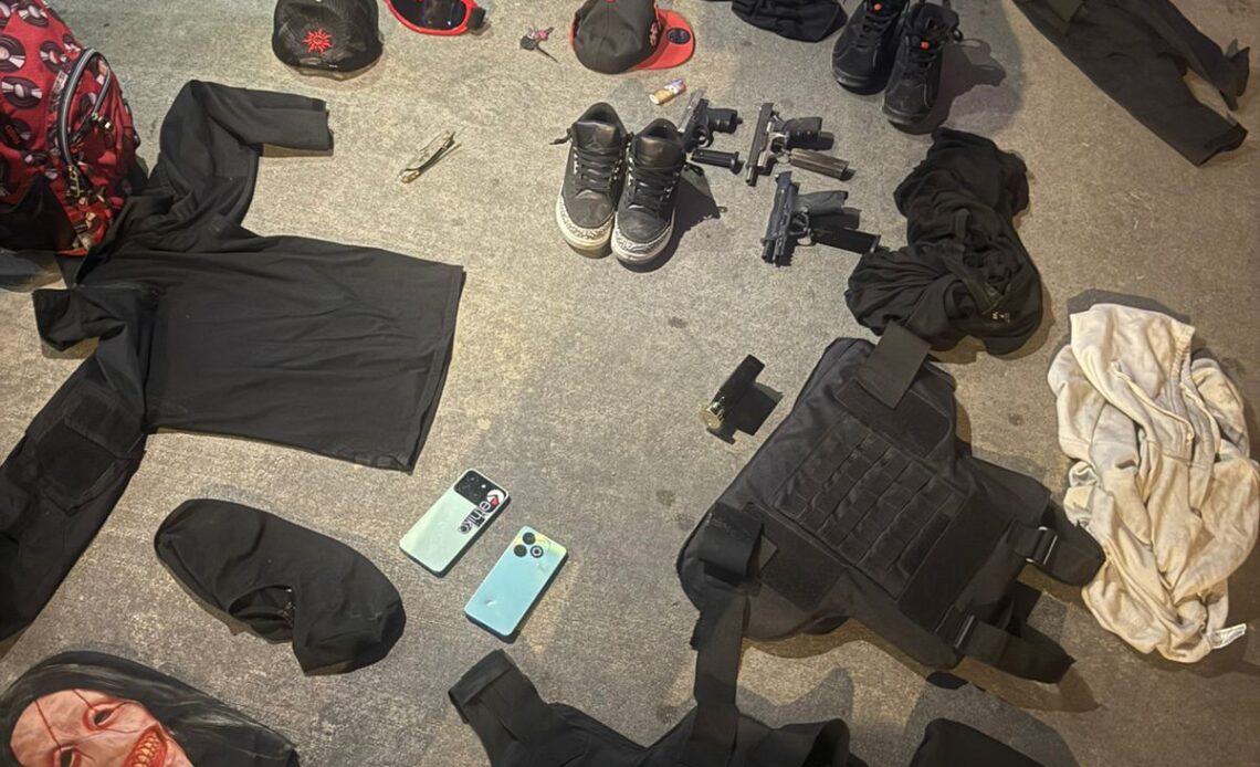 Durante la intervención, las autoridades ocuparon tres pistolas, dos bombas lacrimógenas, tres chalecos antibalas, pasamontañas, mochilas, prendas preciosas, incluyendo cadenas y anilloS, un martillo utilizado para romper vitrinas, así como un vehículo Hyundai Tucson gris, placa G735087. También fueron incautadas indumentarias militares y policiales falsas.